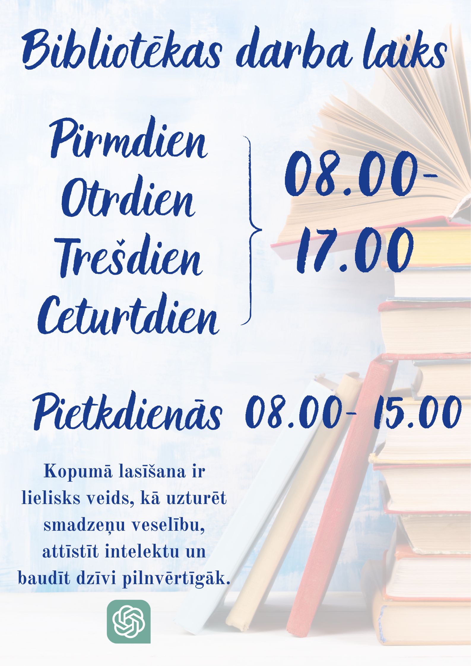 *Skolas bibliotēka ir neatņemama izglītības procesa sastāvdaļa, veicina intelektuālo un kulturālo attīstību, informācijas ieguves un patstāvīgās mācīšanās iemaņu veidošanos. |